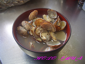 ご近所へのおすそ分けをし、貝汁を頂きました。